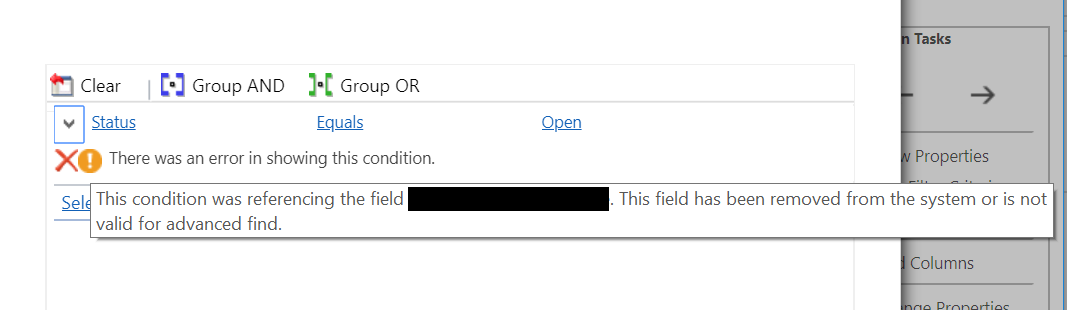 Revert the searchable property of the attribute to “yes” and publish your customization. Once done, open the “Edit Filter Criteria” on your view to see the filter condition appear now 🙂