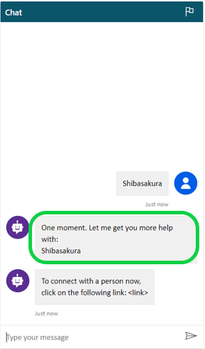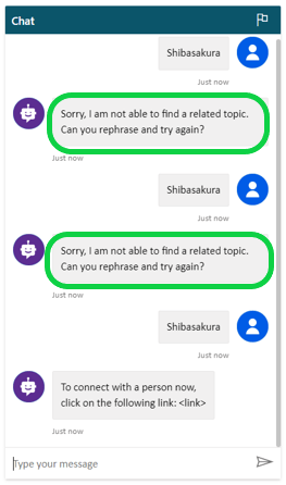 The Bot doesn’t understand the user utterance “Shibasakura”, and it asks the same question twice to the customer before escalating it.