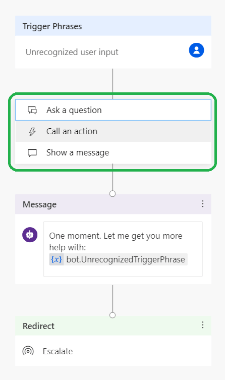 Good news! You now have an option to configure a Fallback with a custom message or action if your bot doesn’t understand the user utterance.